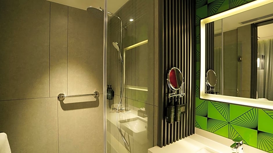 Step into our Mobility Accessible Room - a spacious triple room spanning 280 sqft, featuring a comfortable King size bed and accommodating up to 3 adults and 2 children. Enjoy modern amenities such as a private bathroom, flat-screen TV, air conditioning, and a stunning view, providing a refreshing and relaxing stay for all guests.